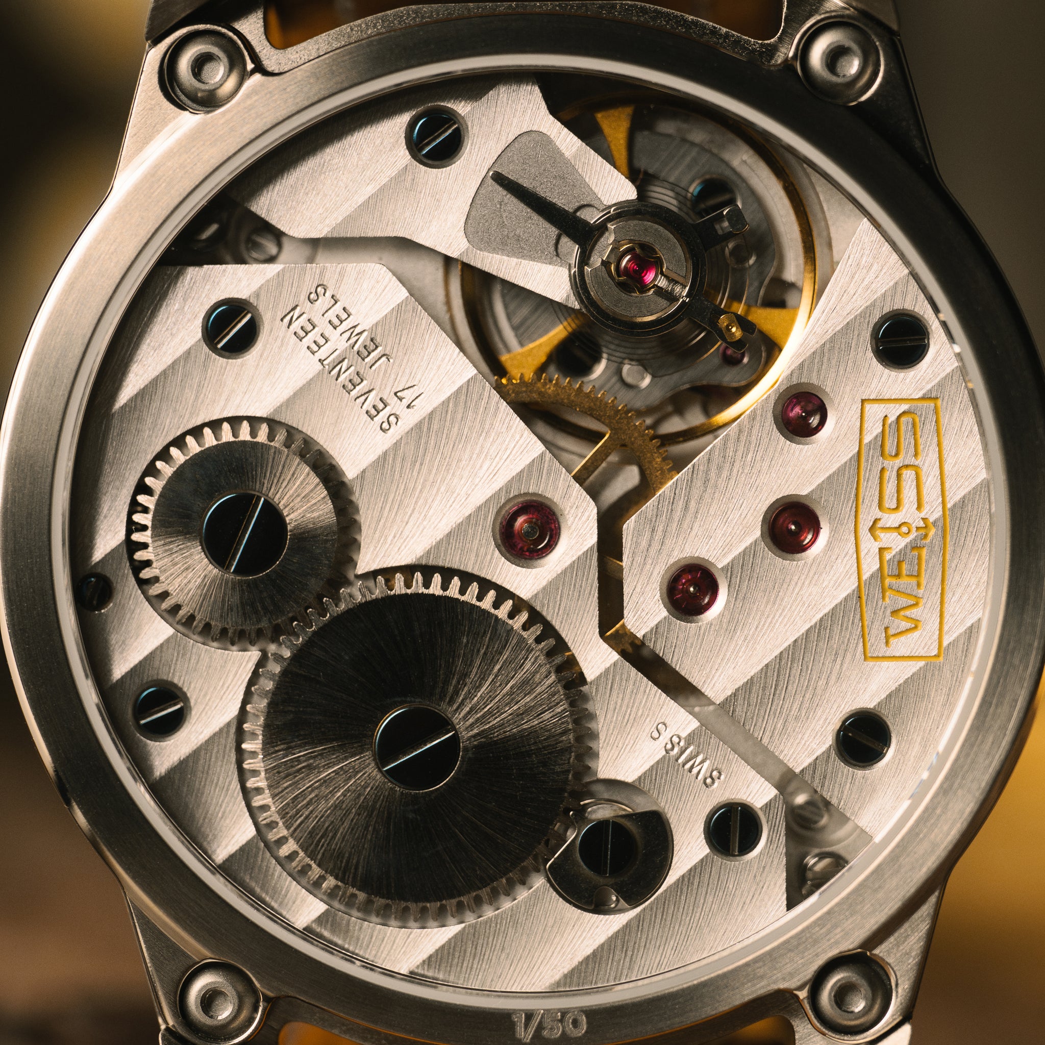 • Movement: Weiss Watch Company Caliber 1001 mechanical movement, 6497 base, finished and assembled by hand